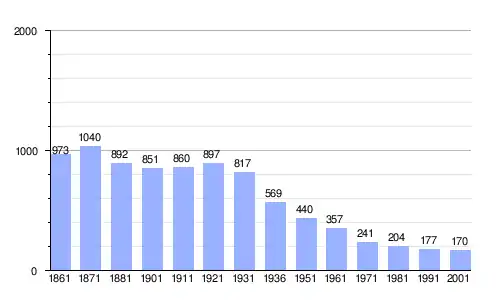 | Gráfica de evolución demográfica de Cartignano entre 1861 y 2001 |