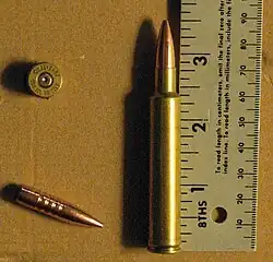 Parte del casquillo del Savage .250-3000, con un rendimiento similar al de un Wasp .219. la velocidad de salida de la bala d e 45 granos es de aproximadamente 3000 pies/s (914,4 m/s), [6]