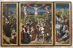 En la estancia de los fieles está ubicado un tríptico de factura flamenca que data de finales del siglo xv que representa la Pasión del Señor. Atribuido a la escuela de Rogier van der Weyden, desarrolla en el panel izquierdo el motivo del camino del Calvario, donde Cristo lleva la cruz a cuestas hasta el monte Gólgota. En el panel central, Cristo crucificado en el centro y acompañado de los dos ladrones. En la escena del plano frontal pueden verse a la Virgen, María Magdalena y el discípulo Juan. En el panel derecho se representa el Descendimiento. Toda la obra destaca por la calidad pictórica del tratamiento anatómico de las figuras y por el detallismo y la minuciosidad en las pinceladas.