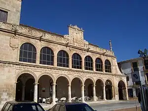 Edificio de estilo renacentista,[1] dentro de la línea del clasicismo puro, en esquina de forma rectangular, con dos plantas más un torreón, coronado por un gran escudo Real de los Austrias. Es obra del arquitecto Domingo de Zalvide y fue construido en el siglo XVI. La construcción del edificio ha sido relacionada también con el maestro cantero y arquitecto Andrés de Vandelvira (1509-1575), que habría ejercido como tracista.[1][2] La fachada está dentro del conjunto de la Plaza Mayor, que en su época estuvo completamente porticada.