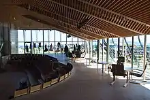 Todas las habitaciones están iluminadas por el día, excepto la sala de 800 m², que se puede abrir al anfiteatro y al vestíbulo, ya que la pared del extremo oeste consta de elementos móviles. El elemento de soporte principal en la estructura es un alto muro de hormigón colado en el gran salón. El gran tramo de estructura de acero que sale de esta pared da espacio en el vestíbulo para las escaleras y rampas orgánicas con varias plantas y arbustos.[3]