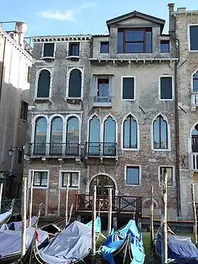El edificio muestra el típico aspecto de las construcciones venecianas del siglo XV, con elementos góticos y renacentistas. La fachada principal presenta ventanas de una y tres aberturas con ojivas góticas. El edificio se remata con una gran buhardilla.[1]