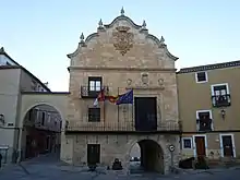 El salón de plenos está situado sobre la puerta Herrada, una de las antiguas puertas de entrada a la ciudad.