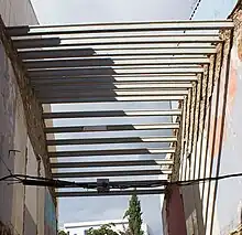 Desde la cocina se salía a un patio o salida con un pequeño huerto, y al fondo o al lado el gallinero y, si había, la porqueriza. La comuna estaba en algún lugar de la salida y normalmente con un pozo muerto que se vaciaba periódicamente. En las casas dando a dos calles (como Sant Cugat del Vallès, Vilassar de Dalt y otras poblaciones), detrás o al final de la salida estaba la caballeriza del caballo o mulo, y el arado y utensilios del campo si los estudiantes hacían de payés . En determinados lugares, en el patio había un pozo de agua o un pozo de acceso al agua de una mina ( Gràcia, Sarrià, etc.), si bien el sistema más extendido de abastecimiento de agua eran los aforos, que, así como el alcantarillado, se impusieron al avanzar la práctica de un urbanismo higienista .