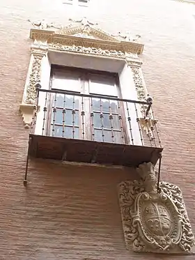 El escudo de esta casa lo colocó por ser su apellido en 1672, D. José Ibáñez Luna, canónigo de la Catedral. En la divisa del escudo figura la frase en latín: “VERITAS OMNIA VINCIT” (La verdad lo conquista todo), al igual que otro escudo en la calle Magallón, que también es de otro Ibáñez y los escudos son similares en los cuarteles inferiores.[3]