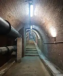 Este conjunto estaba conectado con las instalaciones de la Casa del agua de Trinitat Nova a través de una galería subterránea, que actualmente cruza bajo la avenida Meridiana, y que se prolonga más allá en dirección a Collserola. El agua debía ser bombeada para superar el desnivel de 50 metros que separa a las dos instalaciones.[4] Esta red también incluía el acueducto Bajo, que sale de la galería hacia la ciudad, y el acueducto Alto de Moncada previsto hasta Vallcarca pero que nunca entró en funcionamiento, aunque si se construyó el puente dels Tres Ulls, a unos cientos de metros más arriba de la Casa del Agua.[4]