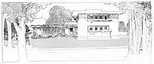 Por las esquinas de la casa se proyectan bandas de madera oscura, que Lloyd llamó "molduras de la banda trasera", que destacan y añaden complejidad a la masa cúbica.[10] En ese sentido, la casa presenta semajanzas con el contemporáneo Unity Temple.[10]