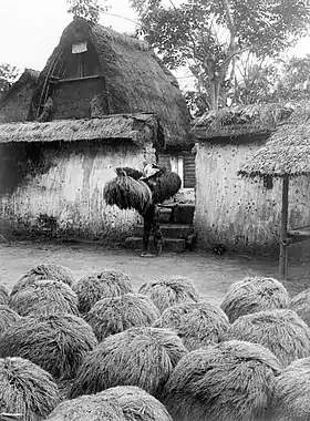 Entre otros edificios utilitarios se pueden citar paon (la cocina) y lumbung (el granero de arroz).