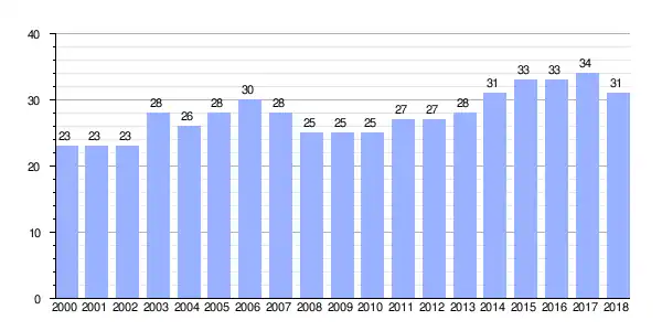 | Gráfica de evolución demográfica de Casal entre 2000 y 2018 |