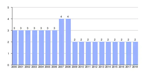 | Gráfica de evolución demográfica de Casarellos entre 2000 y 2018 |