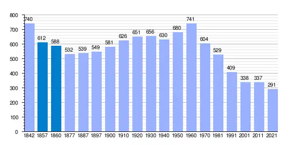 | Gráfica de evolución demográfica de Casas de Don Gómez[4] entre 1842 y 2021 |
