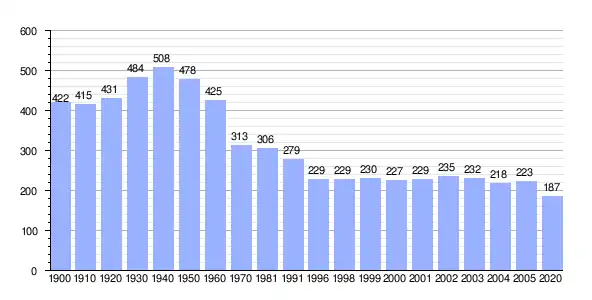 Gráfica de evolución demográfica de Casasbuenas entre 1900 y 2020