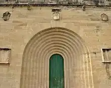 -Es de sillería y con campanario de ladrillo con capiteles.