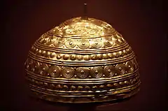 Se trata de una posible sombrero ritual, que por su forma, decoración y cronología ha sido comparado con los cuencos del Tesoro de Villena (Alicante) y los Cuencos de Axtroki.[1]