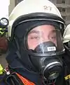 En torno a finales de los 90, algunos servicios empiezan a usar el casco Rosembauer Heros II de poliamida,[95] o el casco Römer Galaxy (Barcelona,[96] Vizcaya[97] o Alicante por ejemplo), pero la gran mayoría de los servicios van a usar el famosísimo casco francés Gallet F1,[98][99][100][101] un casco de bombero semi-integral de poliamida reforzado con fibra de vidrio, es una protección sin igual contra la radiación, las proyecciones y los impactos con espesores de 2 a 3 mm (en los bordes 5mm) con un de 1,2 kg, e incluye gafas protectoras plegables integradas y una visera dorada como protección contra la radiación. Como cubrenucas dispone de una tela de aluminio nomex.