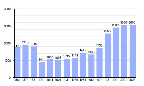 | Gráfica de evolución demográfica de Casella entre 1861 y 2023 |