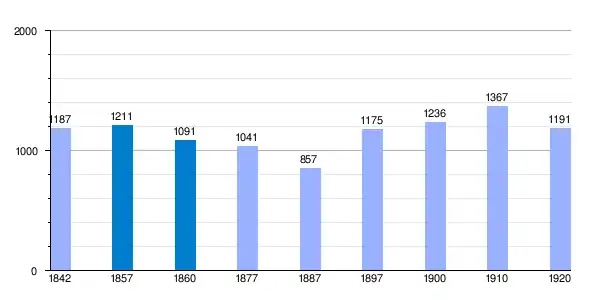 | Gráfica de evolución demográfica de Casillas del Ángel[5] entre 1842 y 1920 |