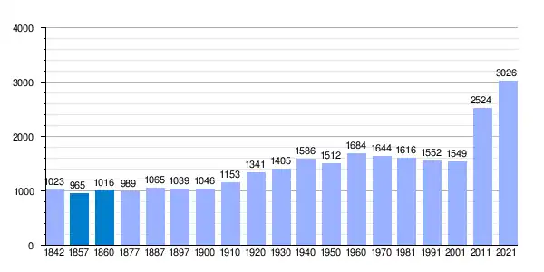 | Gráfica de evolución demográfica de Castañeda[8] entre 1842 y 2021 |