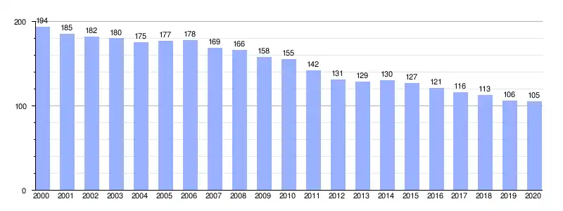 Gráfica de evolución demográfica de Castañeo[3] entre 2000 y 2020