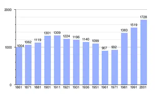 | Gráfica de evolución demográfica de Castagnito entre 1861 y 2001 |