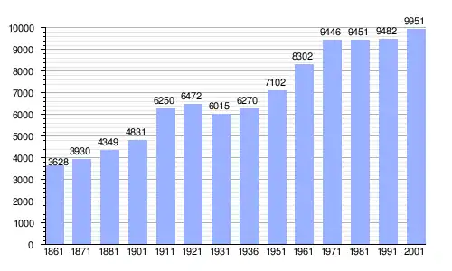 Gráfica de evolución demográfica de Castano Primo entre 1861 y 2001