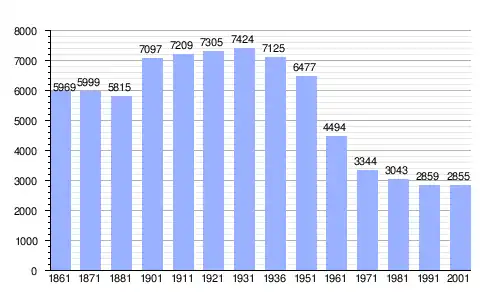 Gráfica de evolución demográfica de Castel San Niccolò entre 1861 y 2001