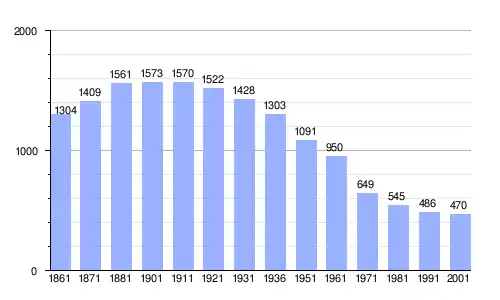 | Gráfica de evolución demográfica de Castelletto Merli entre 1861 y 2001 |