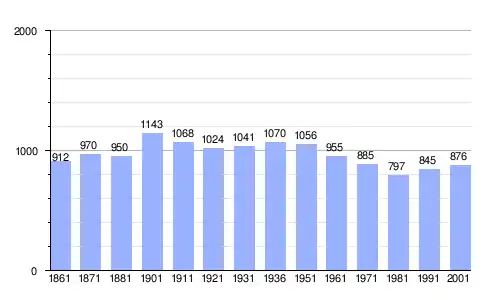 | Gráfica de evolución demográfica de Castelnuovo Parano entre 1861 y 2001 |