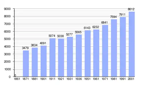 | Gráfica de evolución demográfica de Castelnuovo del Garda entre 1861 y 2001 |