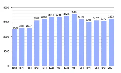 Gráfica de evolución demográfica de Castelplanio entre 1861 y 2001
