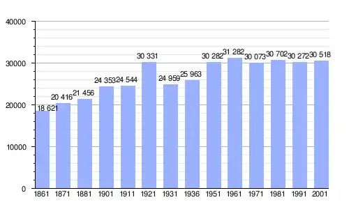 | Gráfica de evolución demográfica de Castelvetrano entre 1861 y 2001 |