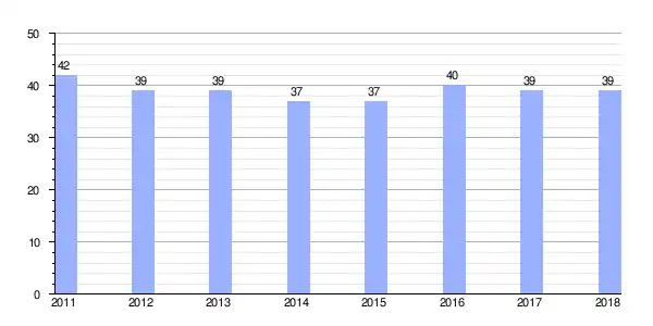 | Gráfica de evolución demográfica de Castenda entre 2011 y 2018 |
