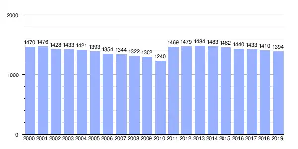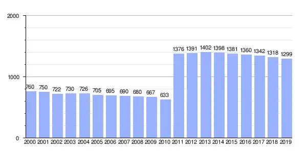 | Gráfica de evolución demográfica de Castiñeiras (lugar) entre 2000 y 2019 |