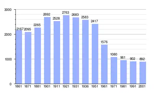 | Gráfica de evolución demográfica de Castiglione a Casauria entre 1861 y 2001 |
