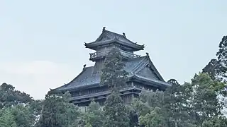 El tenshu, o castillo principal fue reconstruido en 1985 en madera y su construcción se basó en fotografías de los castillos de su época. Al día de hoy aloja un museo que contiene objetos relacionados con su historia.[4]
