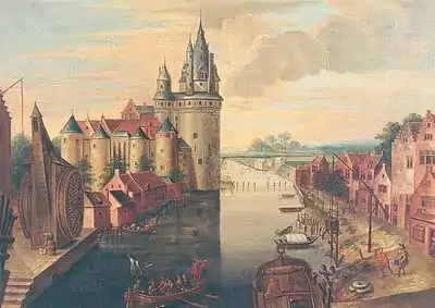 Ya hacia el año 880, los normandos habían construido un fuerte para pasar el invierno. Hacia el año 1000, Balduino IV de Flandes (980-1035) erigió un castillo a costa de los habitantes de la ciudad. Jacques de Chatillon (+1302), vasallo del rey de Francia, Felipe IV (1268-1314), construyó un nuevo castillo. Pero por un tratado de 1316 entre la regente de Francia y los diputados de Flandes se acordó su demolición y la prohibición de construir otro. Sin embargo, en 1337 los habitantes de Courtrai son autorizados para construir, una vez más, un nuevo castillo .[1]