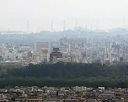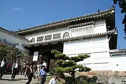 ![]() Torre del Castillo de Himeji, visto desde el suroeste (Nishi no maru). | ||