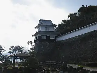 ![]() Torre de vigilancia (reconstruida) del castillo de Kushima | ||