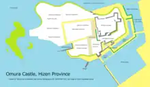 El clan Ōmura había sido establecido durante el periodo Kamakura por descendientes de Fujiwara no Sumitomo y habían construido un castillo que fue la residencia ancestral del clan. La ubicación del mismo se escogió teniendo en consideración la proximidad al mar y las posibilidades de comerciar con el extranjero.