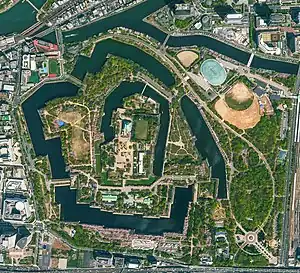 Wikimedia Commons alberga una categoría multimedia sobre Castillo de Osaka.- Foto satelital del castillo y sus alrededores