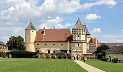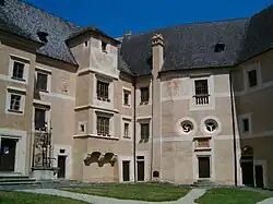 Bajo el protestante Sebastian Grabner entre los años 1593 hasta 1597 una gran parte del castillo gótico fue derribado. En su lugar fue construido lo que hoy es el castillo en el estilo Renacimiento con 13 torres. En adición el castillo recibió en el año 1614 una gran plaza de torneo así como 46 arcadas. Después de recibir un dueño católico con el cardenal von Dietrichstein en el año 1611 hubo un asalto de las tropas de la coalición evangélica de Horn al palacio el 9 de julio de 1620.