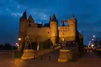 Frente a la entrada del castillo, se encuentra la estatua de Lange Wapper, un gigante que, según la leyenda, en las noche vagaba por las calles de Amberes, asustando a los habitantes de la ciudad.