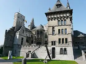 El arco por el que se accede al castillo está coronado con un bajorrelieve desfigurado de un hombre, de hacia el siglo II. Representa a Semini, dios celta de la fertilidad. Las mujeres del lugar recurrían al culto de Semini para quedar embarazadas. Ese culto pagano quedó olvidado bastante después de la caída del Imperio Romano (s. V) por la conversión al cristianismo de estas gentes. La escultura del hombre, que portaba un falo enorme, fue parcialmente desfigurada por los jesuitas en el siglo XVII. Desde 1986 la asociación cultural AKSIE, rememora este y otros aspectos de la historia del Castillo (AKSIE = Antwerp Komitee Semini in Ere).