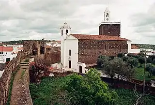 ![]() Castillo de Alandroal, Portugal. Vista desde el adarve; al fondo, la iglesia de N. Sra. da Graça, y al fondo, la torre del homenaje. | ||