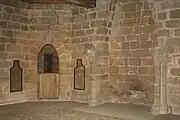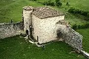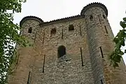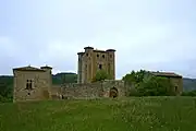 En medio del recinto amurallado se levanta la torre del homenaje cuadrangular, bien conservada, de 11 metros de lado, flanqueada por cuatro torrecillas de vigía. Una de éstas, la del sureste, tiene una escalera de caracol y las demás, construidas con doble contrafuerte, estaban defendidas por dos aberturas triangulares todavía visibles. La torre, de unos 25 m de altura, tiene cuatro plantas, de bóvedas ojivales las dos primeras, la tercera tiene techo y la cuarta es la principal para la defensa. En la fachada sur se abre la puerta de entrada en la planta baja. También hay una puerta en la primera planta que seguramente servía de acceso a la vivienda mencionada arriba. En esa misma planta, en la fachada oriental, se abre una ventana decorada con columnillas y rematada por un adorno multilobulado.