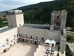 El castillo tuvo su apogeo durante el reinado de Luis I (Luis el Grande). Su importancia radicaba en que estaba cerca de la carretera que llevaba a Polonia (la madre de Luis el Grande, Isabel Łokietek, fue una princesa polaca, Luis se convirtió en rey de Polonia en 1370). El rey reconstruyó el castillo y lo modernizó. Rodeado por varios muros, el castillo interior fue construido alrededor de un patio rectangular, y tenía cuatro torres, una en cada esquina. En el primer piso estaban los almacenes y en el segundo piso estaban las habitaciones y el Salón de los Caballeros, que era de 25 metros de largo y 13 metros de ancho. La modernización del castillo fue terminada bajo el reinado de la hija de Luis María. El castillo estaba rodeado por un foso de cuatro metros de profundidad.