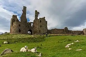 El castillo ocupa un prominente cabo como a 1,5 km al norte de Crasten. En el lado sur hay una suave pendiente que parte del castillo, y que es más pronunciada en el norte. En el lado norte del perímetro, ya en la Bahía de Embleton, forma un acantilado de unos 45 metros. El cabo en sí forma parte da la Gran Whin Silla, una formación geológica que se extiendo a lo largo de Northumberland.