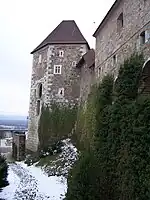 ![]() Castillo de Liubliana desde la ciudad de Liubliana. | ||