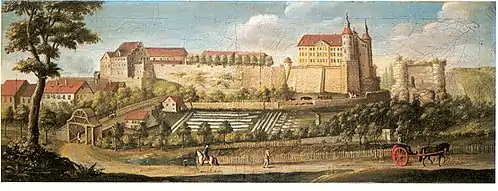 Hasta 1397, el castillo perteneció a la familia Montfaucon. El matrimonio de Henriette d'Orbe con Everardo IV, hijo del conde Everardo III de Wurtemberg, transfirió la propiedad del castillo a la familia Wurtemberg. Fue el hogar de Sofía Dorotea de Brandeburgo-Schwedt, madre de la emperatriz María Feodorovna de Rusia.