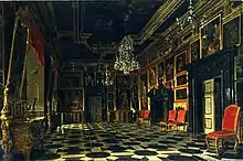 Las paredes de todas las habitaciones estaban cubiertas con cuadros, retratos (unos 200), papeles pintados; Los pisos eran de baldosas de mármol. Cada habitación también tenía una chimenea de mármol. Entre los elegantes muebles se encontraban numerosos ejemplares del botín de Estanislao Koniecpolski durante las guerras con los turcos y los tártaros, principalmente alfombras persas y tiendas de campaña turcas. En la biblioteca se encontraba el archivo de la familia Koniecpolski y Rzewuski. El rey Vladislao IV de Polonia y su esposa francesa María Luisa de Gonzaga quedaron impresionados por el complejo cuando lo visitaron a principios de 1646. Poco después de su visita, Stanisław Koniecpolski murió.